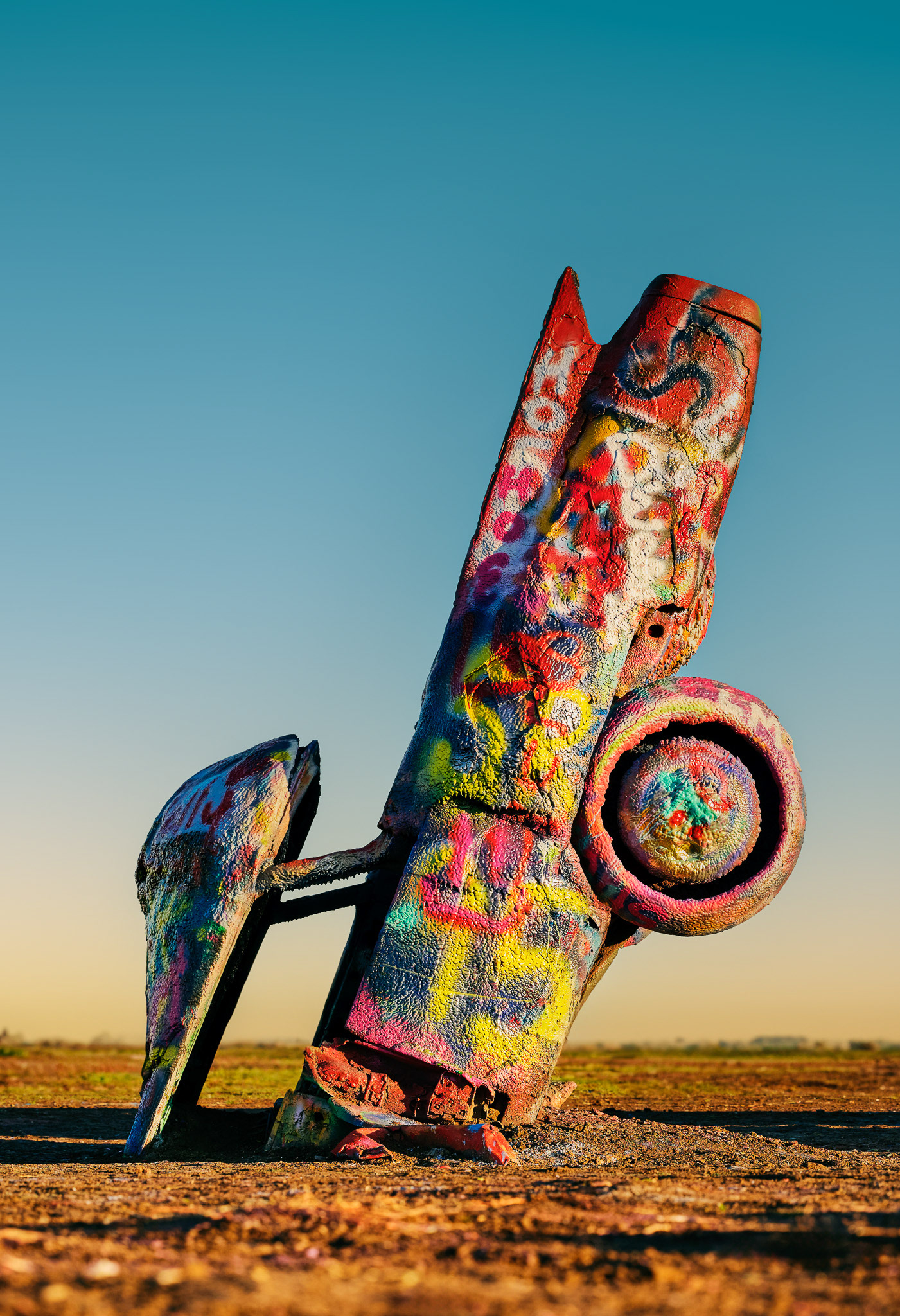 On the roadside of what once was old Route 66, just a bit outside of Amarillo Texas, is Cadillac Ranch. An iconic art installation and monument to and critique of American popular culture. It was created in 1974 by the eccentric, genre-bending, architectural art group, “Ant Farm”. Plenty has been written (and better than i can) about both this art piece and the group over the years, but, for me, the most interesting part is the simple passage of time — and the beautifully massive accumulation of paint.